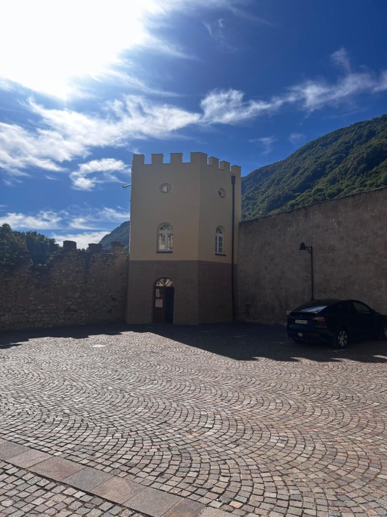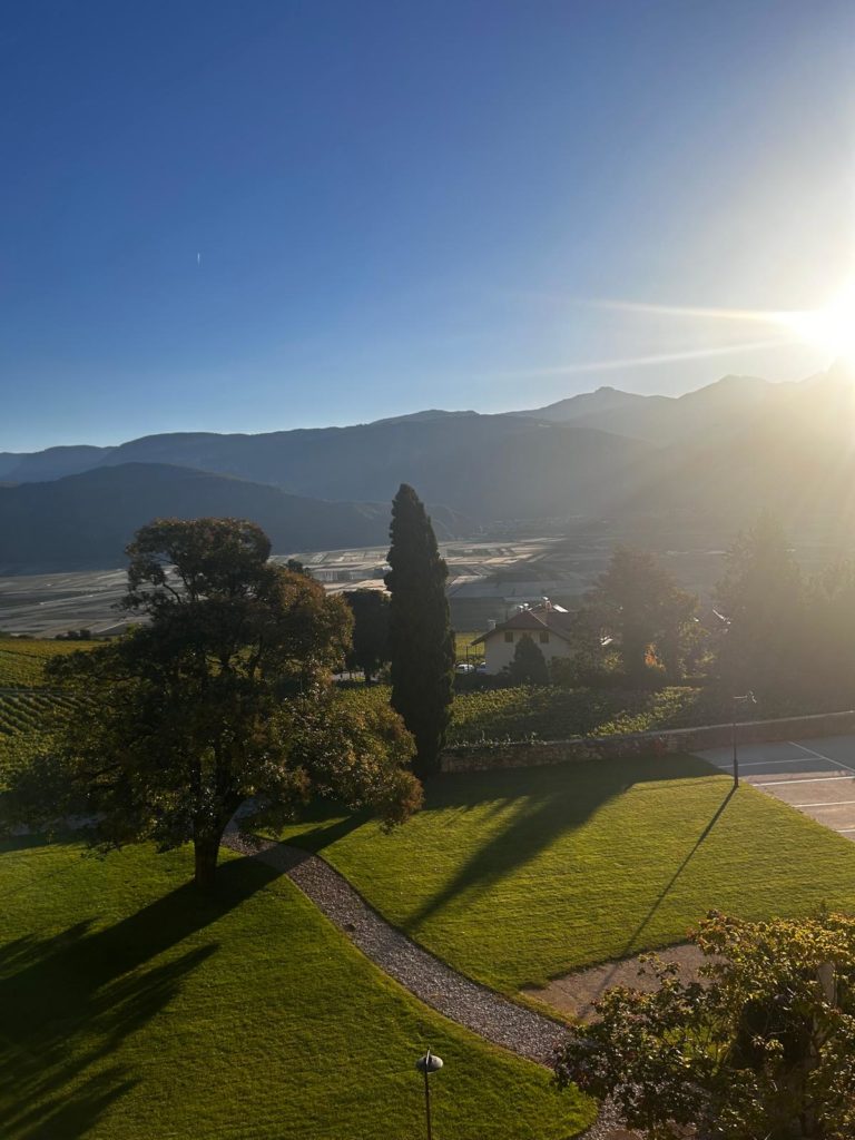 Im ersten Bild sieht man die schöne Aussicht auf das Schloss Rechenthal, das oberhalb von Tramin liegt. Im zweiten Bild erkennt man das Haupttor, durch das man in die Anlage gelangt. Auf dem dritten Bild ist das Nebengebäude dargestellt, in dem sich mehrere Zimmer befinden. Im vierten Bild sieht man den Turm, wo es auch noch Zimmer hat. Das fünfte Bild zeigt das Hauptgebäude, das den Mittelpunkt der gesamten Anlage bildet. Von dort aus hat man eine wunderbare Aussicht über die Weinberge und das Tal. Auch die allgemeine Aussicht rund um das Schloss ist sehr beeindruckend.
